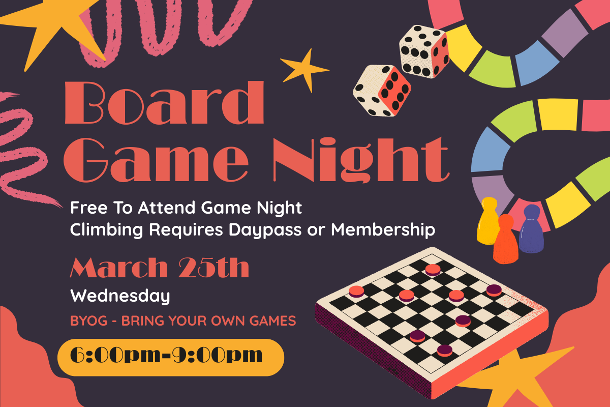 Flemington, NJ Back to "Flemington, NJ" Home Bookings & Subscriptions Options to Climb Pricing Calendar Contact Photos Careers Waivers Wednesday, March 25, 2026 6:00pm ~ 9:00pm Board Game Night Flemington, NJ Back to Events