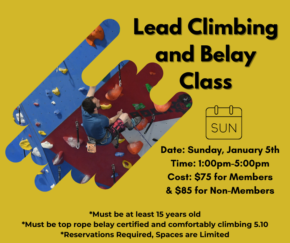 Flemington, NJ Back to "Flemington, NJ" Home Bookings & Subscriptions Options to Climb Pricing Calendar Contact Photos Careers Waivers Sunday, January 4, 2026 1:00pm ~ 5:00pm Lead Climbing and Belay Class Flemington, NJ Back to Events