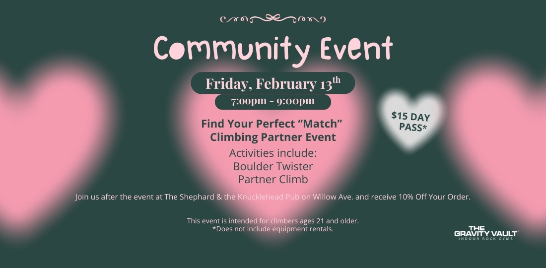 Friday, February 13, 2026 7:00pm ~ 9:00pm Find your perfect "Match" Climbing Partner Event Hoboken, NJ Back to Events