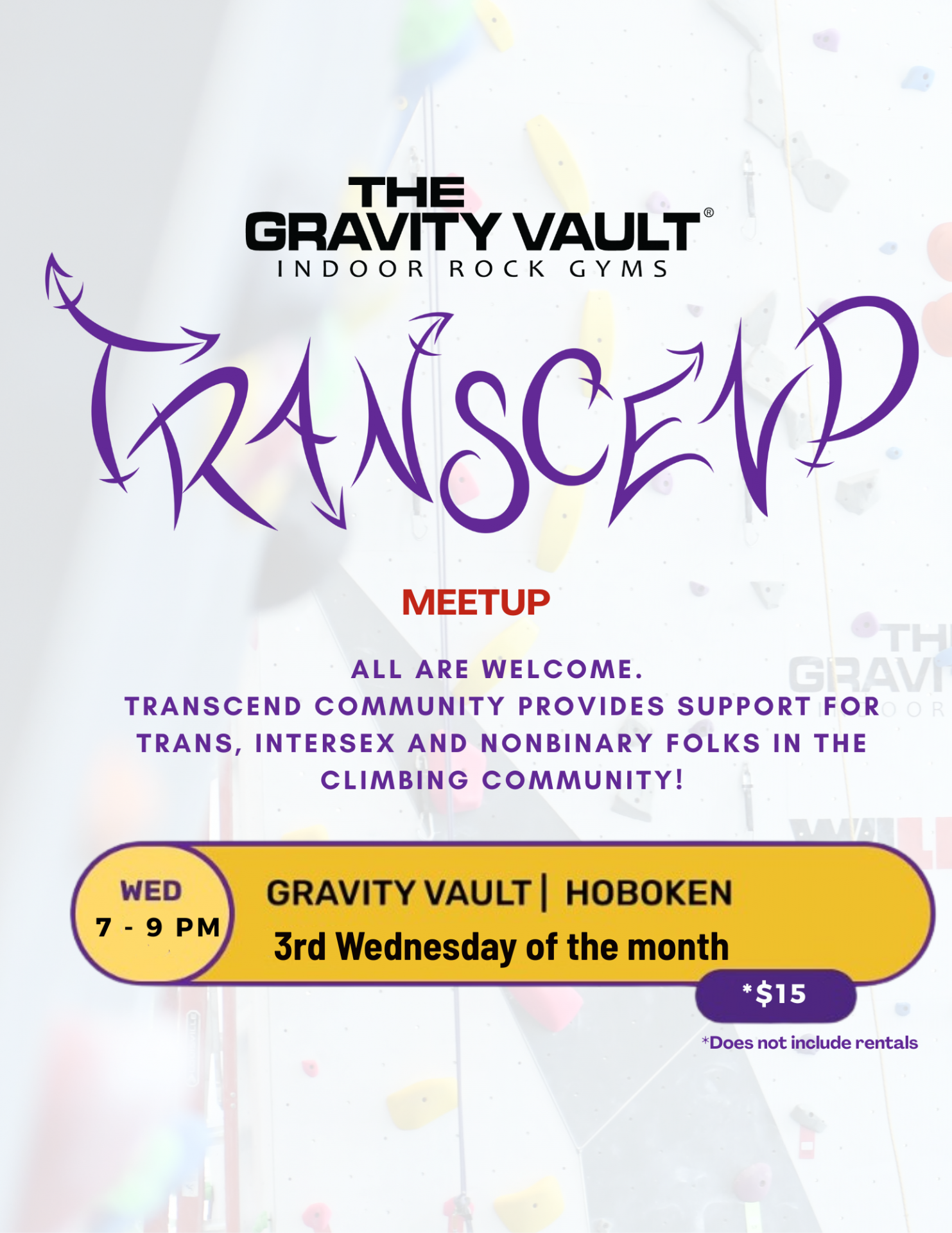 Hoboken, NJ Back to "Hoboken, NJ" Home Bookings & Subscriptions Options to Climb Pricing Calendar Contact Photos Careers Waivers Wednesday, November 19, 2025 7:00pm ~ 9:00pm Transcend Meetup Hoboken, NJ Back to Events