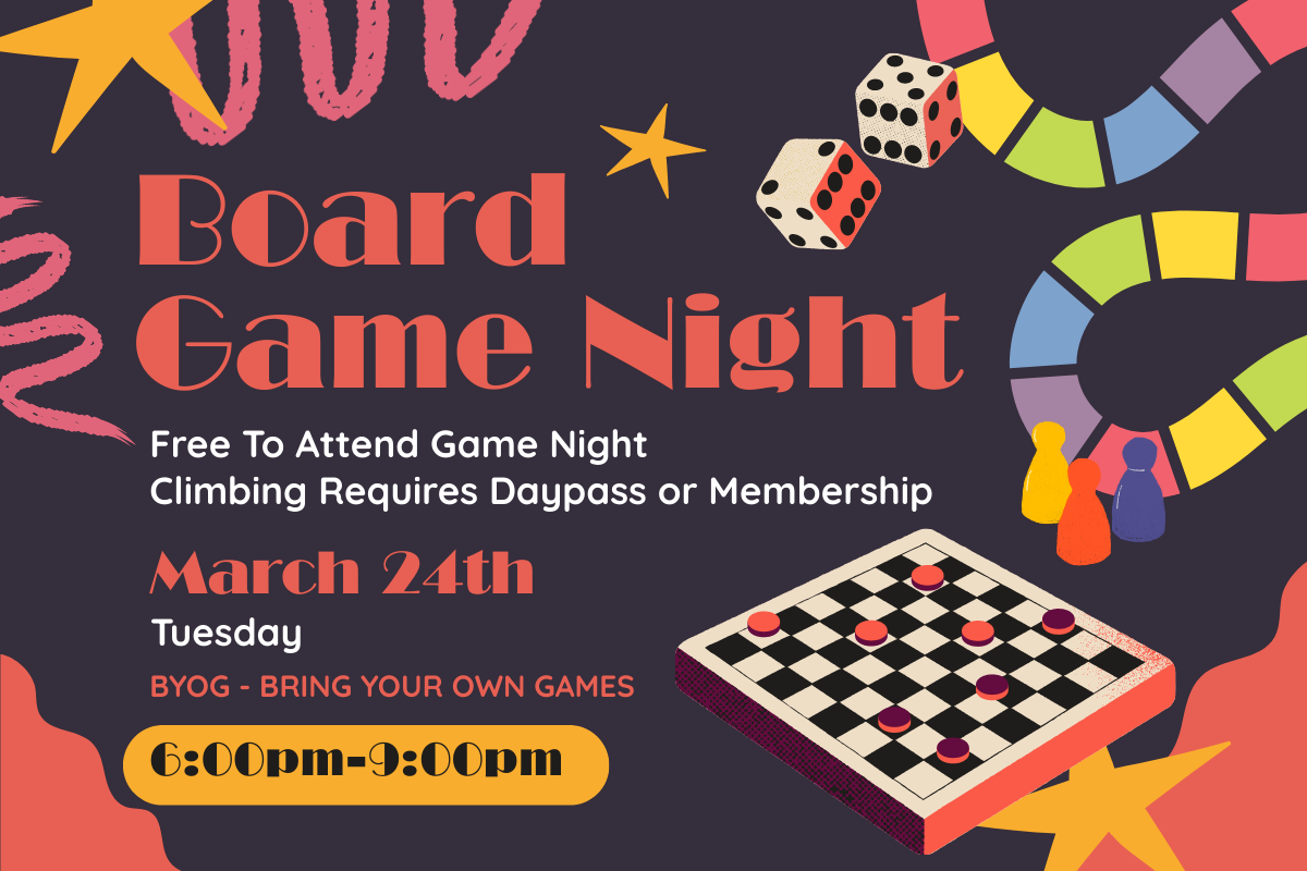 Lehigh Valley, PA Back to "Lehigh Valley, PA" Home Book Now Options to Climb Pricing Calendar Contact Careers Waivers Tuesday, March 24, 2026 6:00pm ~ 9:00pm Board Game Night Lehigh Valley, PA Back to Events