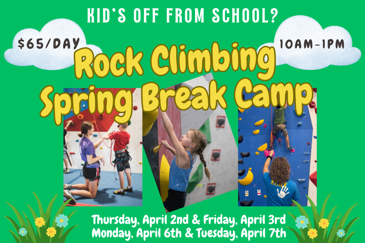 This year Spring Break Camp is even bigger and better — now a full three hours of climbing fun from