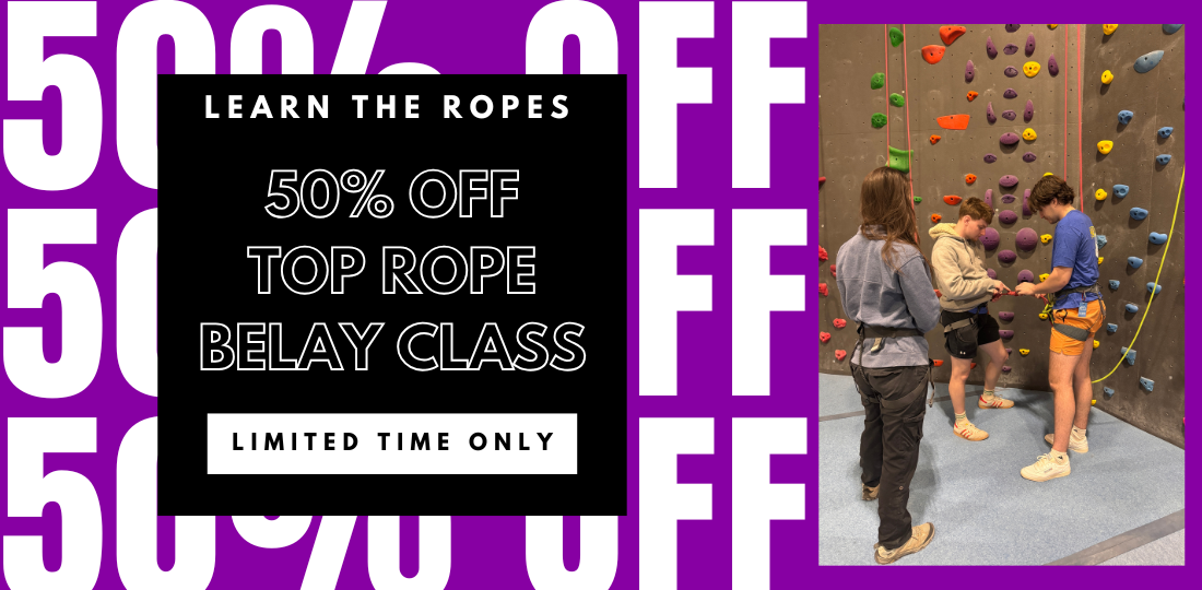Tuesday, January 20, 2026 3:00pm ~ 5:00pm Top Rope Belay Class (50% off) Lehigh Valley, PA Learn the Ropes! Sign up for our half off top rope belay classes! Back to Events