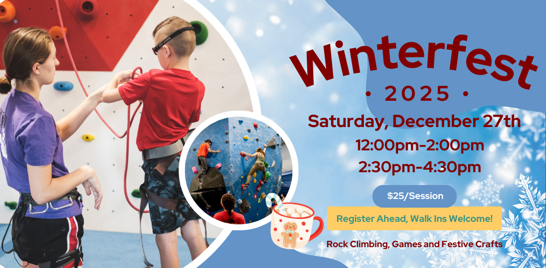 Kick off the winter break with a full day of fun, adventure, and creativity at Kids Winterfest! This special one-day event brings together rock climbing, games and a winter craft to take home!!