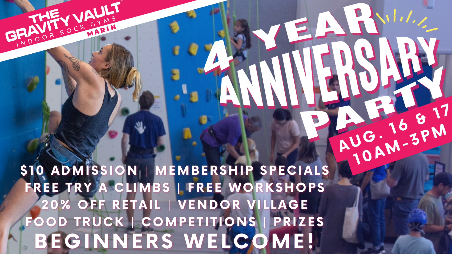 The Gravity Vault Marin is closing at 6pm for New Years Eve.