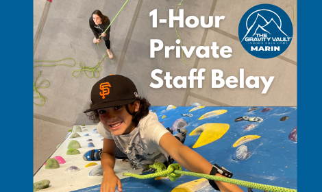 The Staff Belay is one of our most popular options to climb. It can be for up to 4 climbers ages 5+ and is great for all fitness levels. We provide you with the necessary equipment and an instructor to take you around our facility for an hour of fun top rope climbing!