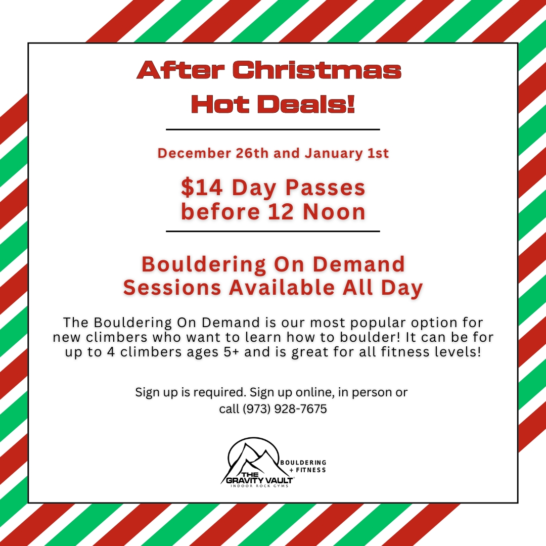 Come on in between December 26th and January 1st before 12pm to recieve $14 day passes!