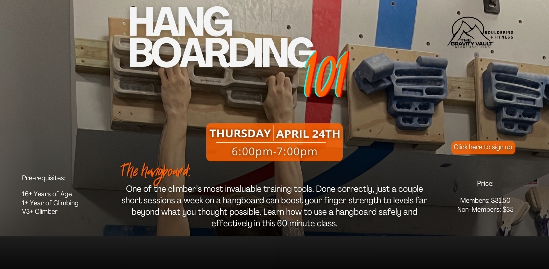 The hangboard is one of the climbers most invaluable training tools. Done correctly, just a couple short sessions a week on a hangboard can boost your finger strength to levels far beyond what you thought possible. Learn how to use a hangboard safely and effectively in this 60 minute class.
