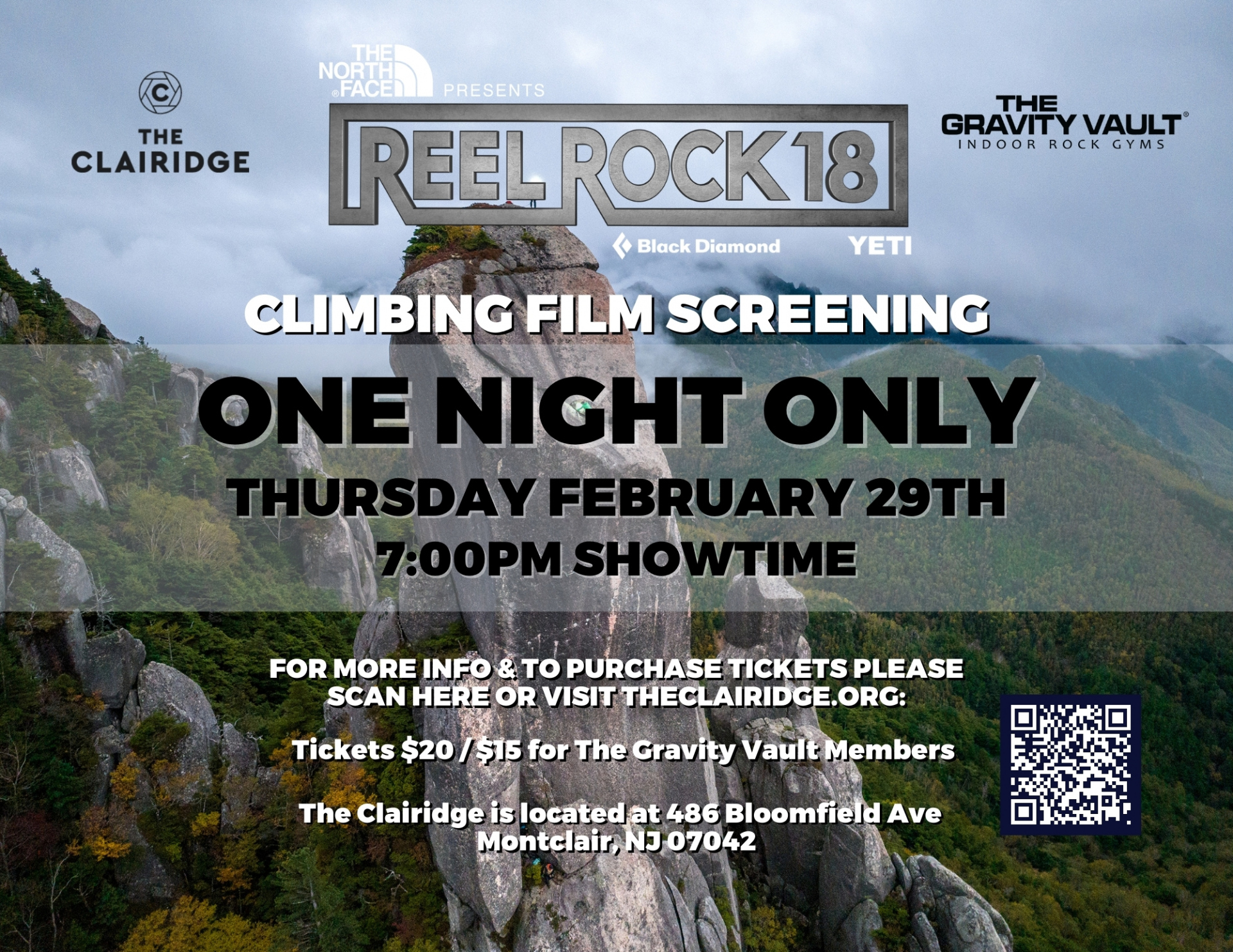 Thursday, February 29, 2024 7:00pm ~ 9:00pm Reel Rock 18 Showing Montclair, NJ Purchase your tickets here! Back to Events