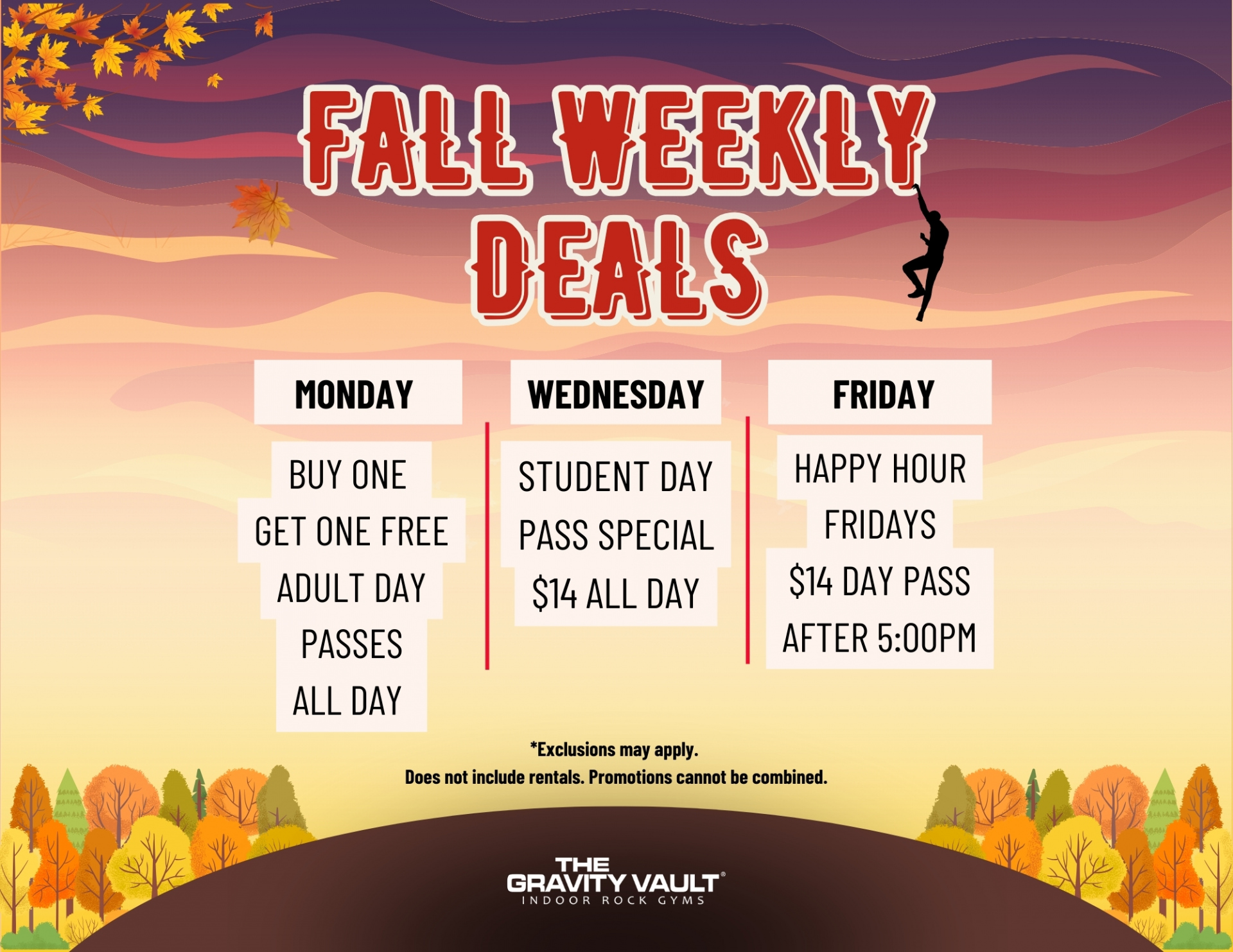 *sale does not apply to Clearance Items, Food & Beverages, Chalk, Crash Pads, or Special Orders.