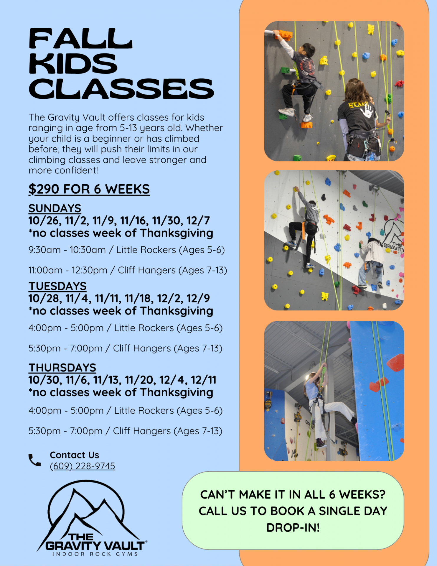 Princeton, NJ Back to "Princeton, NJ" Home Book Now Options to Climb Pricing Calendar Contact Careers Waivers Sunday, October 26, 2025 5:30pm ~ 7:00pm Cliff Hangers (Ages 7-13) Princeton, NJ Back to Events