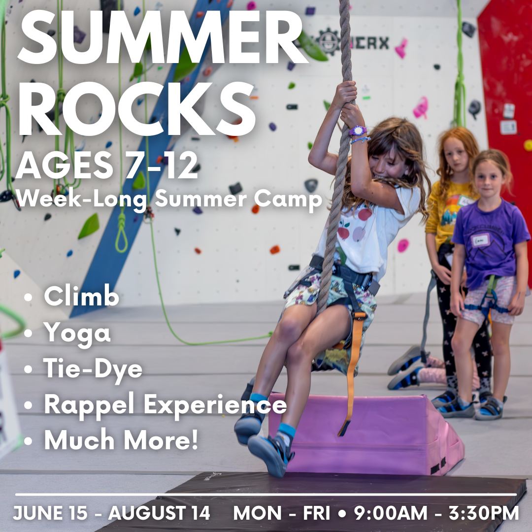 Knot your average day camp! Summer Rocks is designed to challenge kids both physically and mentally while they have a blast with their peers. Under the guidance of our experienced climbing instructors, campers will:
